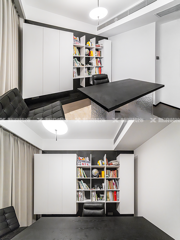 通透不擁擠,小書房最怕壓抑?設(shè)計師用了懸挑設(shè)計的書桌,搭配透明亞克力桌腳的大板桌!視覺上桌子像浮在空中一樣,地面空間完全釋放,小書房瞬間顯大又通透!辦公學習心情都變輕盈~